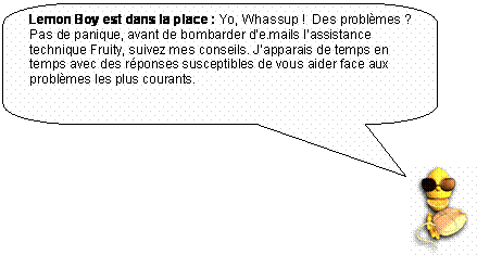 4. Notes site Internet. Un site Internet particulièrement vaste est consacré à Fruity Loops www.fruityloops.com. Ce site comporte une section d’assistance (ou “support”) avec des FAQ (questions les plus fréquemment posées) et un Forum de discussion. Consultez ces deux rubriques pour voir si quelqu’un n’a pas déjà répondu aux questions que vous vous posez. Dans le cas contraire, n’hésitez pas à envoyer votre propre question.