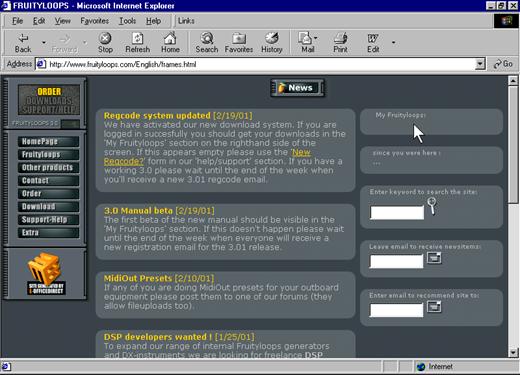 2. Allez sur notre site Internet. Utilisez le lien vers l’URL d’enregistrement pour accéder au site Internet Fruity Loops 3. L’enregistrement se fait automatiquement sur le site et vous êtes renvoyé vers la page "News" représentée ci-dessous.