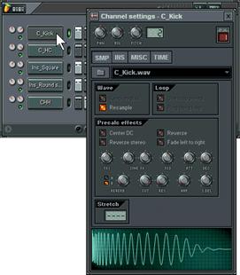 11. Pourquoi je n’entends pas l’effet ? Si vous êtes toujours sur la grosse caisse de la boucle GettingStarted1.flp, vous aurez effectivement du mal à percevoir l’influence du LFO ; même si celle de l’enveloppe est perceptible. Ces effets sont plus marqués sur les échantillons plus longs. Ouvrez l’onglet Ins (instrument) de l’échantillon Ins_Round et modifiez les réglages.