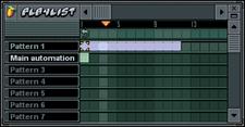 3. Utilisation de la liste de lecture. Tout comme les réglages de l’éditeur d’événements, ceux de la fenêtre Piano Roll peuvent être appliqués sur plus d’un Pattern (mesure). Dans l’exemple ci-dessous, les réglages Piano Roll des canaux Ins_Round et Ins_Square ont été programmés sur des mélodies de 4 mesures. Dans la liste de lecture ci-dessous, le Pattern 3 est donc déclenché une fois toutes les 4 mesures.