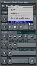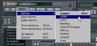 3. Affectation d’une commande de Fruity à votre contrôleur. Chargez n’importe laquelle de vos boucles utilisant un canal TS-404. La boucle GettingStarted4.flp peut constituer un très bon point de départ.