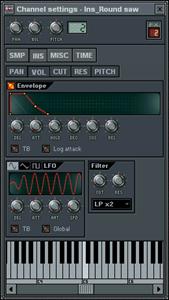 6. Jouez sur les réglages des instruments. Concentrons-nous sur l’onglet INS avant d’aller plus loin (reportez vous à l’aide en ligne pour obtenir de plus amples informations sur l’onglet MISC). Cliquez sur l’onglet INS pour accéder aux réglages d’instruments. Cet onglet vous permet d’appliquer des enveloppes et des LFO aux réglages de volume, de panoramique, aux filtres de coupure et de résonance, ainsi qu’aux réglages de hauteur de votre échantillon.